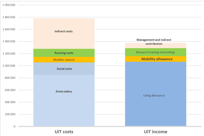 Marie Skłodowska-Curie - Postdoctoral Fellowships at UiTThe MSCA-PF budget is based on unit costs, cf. table below. EU regulations define how these unit costs are to be used in the project and there is limited flexibility to reallocate allowances to other cost items. In practical terms, e.g. remuneration of the MSCA fellow, the picture is more complicated as national taxes for both the employee, and the employer has to be taken into account. Furthermore, the Euro to NOK currency conversion rate will affect the overall budget.