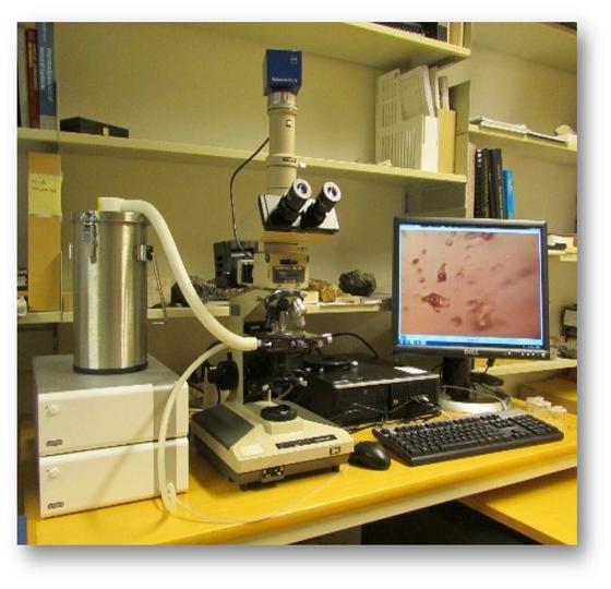 The fluid inclusion laboratory at the Department of Geosciences, UiT, is equipped with a Linkam THMS600 heating-freezing stage and with a Linkam TS1400XY heating stage. The facilities allow studies of fluid and melt inclusions in a temperature range from -180 up to +1300°C.