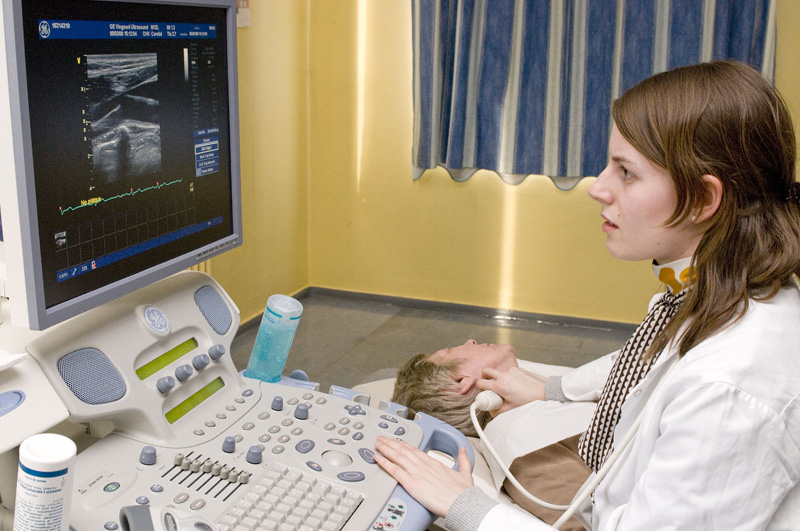 Forskere vil sjekke helsetilstanden din helt gratis på Forskningstorget. Bildet viser ultralydundersøkelse av halspulsårer. Foto: Institutt for samfunnsmedisin, UiT |