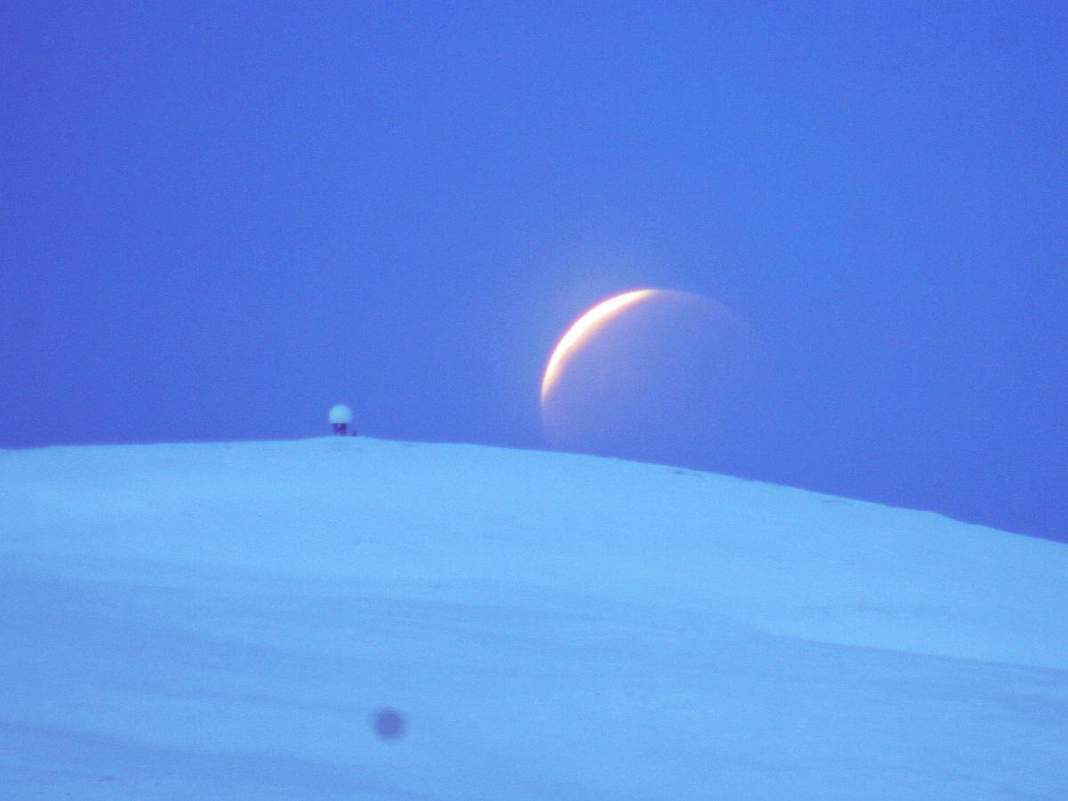 – Hele formørkelsen er synlig fra Svalbard. Sett fra nordspissen av Finnmark vil den formørkede månen krype sakte langs havflaten i nord før den klatrer opp igjen – et spektakulært syn hvis man har fri sikt mot nord uten dis over vannet. Lenger sør vil månen gå ned i meget skrå vinkel, og fjell og andre hindringer gjør at måneskiven forsvinner mange minutter tidligere enn beregningene, sier Thorvaldsen.