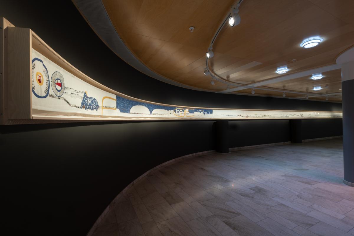 Tekstilkuntverket Historjá av Britta Marakatt-Labba er utlånt og er en del av en utstilling på Moderna Museum i Stockholm. Samtidig kan du oppleve historien som kunstverket formidler her i Tromsø.