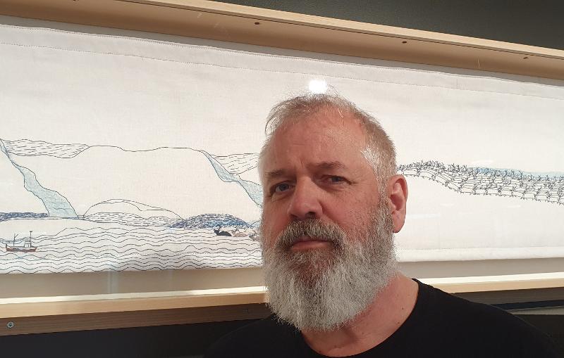 Universitetslektor og medlem i kunstutvalget Rognald Heiseldal Bergesen forteller at kunstverket Historjà er et verk som er tilgjengelig og relevant for folk flest. Foto: Harrieth Lundberg / UiT