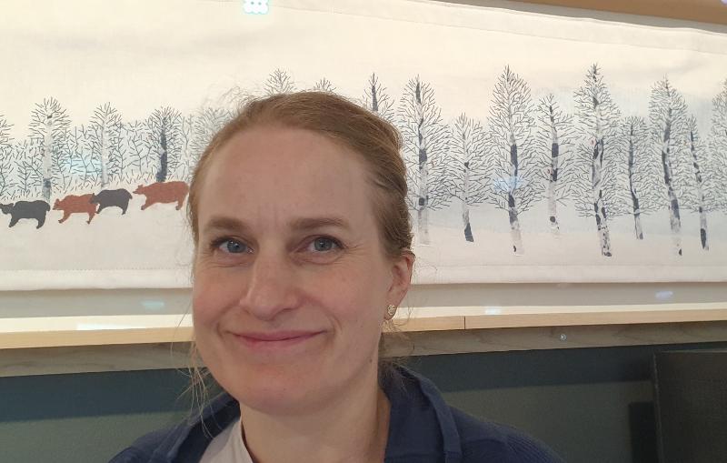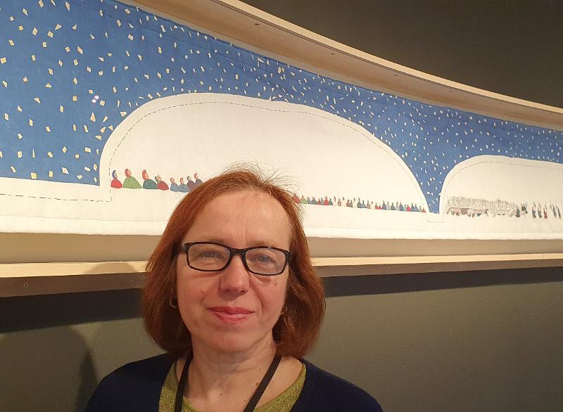 Førsteamanuensis i kunsthistorie Ingeborg Høvik forteller at Historja som tekstilkunt også er unikt i europeisk vestlig kunsthistorie. Foto: Harrieth Lundberg /UiT