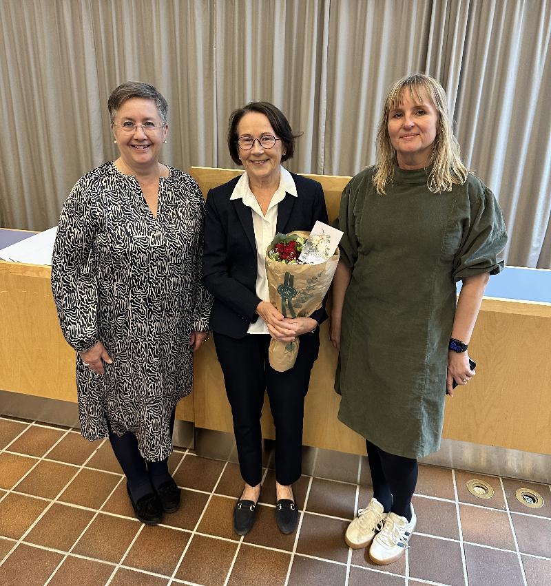 Instituttleder Monica Martinussen (t.v) og undervisningsleder Camilla Lauritzen takker av Annelise Fredriksen (i midten). Foto: Mariann S. Karlsen/ UiT