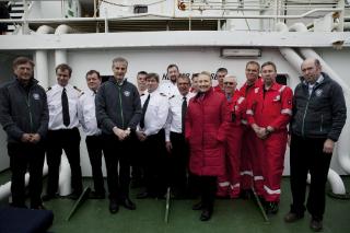 De to ministrene fikk en to-timers guidet tur på Helmer Hanssen, et av universitetets forskningsfartøy, og Aarbakke forteller at Clinton var oppriktig interessert i å lære mer om utfordringene og mulighetene som eksisterer i nordområdene. Det var rikelig tid til både uformell informasjon og meningsutveksling, men også forberedte briefinger.