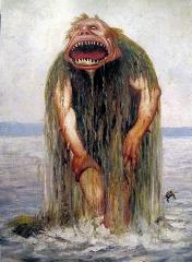 | Draugen er en av Nord-Norges mest kjente mytiske skikkelser, men finnes knapt sør for Trondheim. Theodor Kittelsen har kalt sin kreasjon “Vastroldet som levede af bare Jomfrukjød”. |