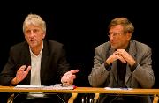 | Rektorene Sveinung Eikeland (HiF) og Jarle Aarbakke (UiT) var på et felles styreseminar i Alta for å diskutere fusjonsplanene. Foto: Inger Elin Utsi, Høgskolen i Finnmark |