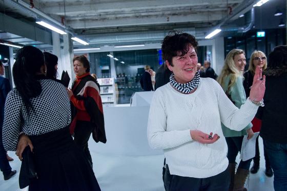 | Besøkende Birgit Stein er veldig interessert i kunst og fikk invitasjon til åpningen. Hun var også på åpninga av Kulturhuset i Tromsø for 30 år siden. Stein er imponert over å se de fantastiske verkstedene og nivået på kunststudentene. Foto: Lars Åke Andersen |