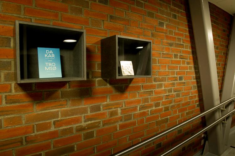 | Kunstverket Dakar-Tromsø som er plassert i gangbroa mellom Realfagsbygget og Teknologibygget. Foto: Ola Røe |