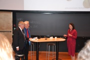 | Professor Willy-Tore Mørch og barnepsykolog Magne Raundalen avsluttet seminaret med "Dommen over vår tid- kan vi endre den nå?" ledet av insituttleder ved RKBU Nord Merete Saus. |