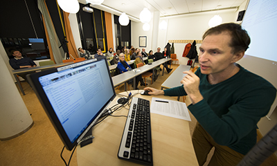 | Professor Ilya Utekhin ved European University of St. Petersburg holdt gjesteforelesning og viste eksempler fra egen forskning ved UiT tirsdag ettermiddag. Foto: Stig Brøndbo |