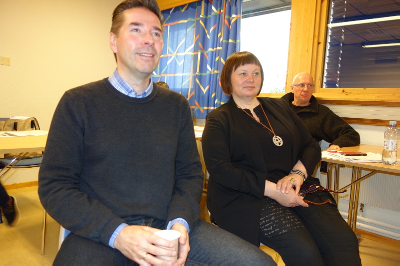 Ellinor Guttorm Utsi fra Davvi Siida, jurymedlem Arnt Andersen fra Innovasjon Norge og universitetslektor Peter Fischer fra UiT Finnmarksfakultetet, følger spent med på studentenes presentasjoner. Utsi håper at hun her kan få med seg gode ideer til konsepter hun kan utvikle i bedriften.