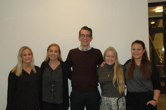 | Glade studenter med stipend: Fra v. Mari Marstrander, Tina Klakegg, Morten C. Lindstad, Amalie Jota og Silje Sandstedt. |