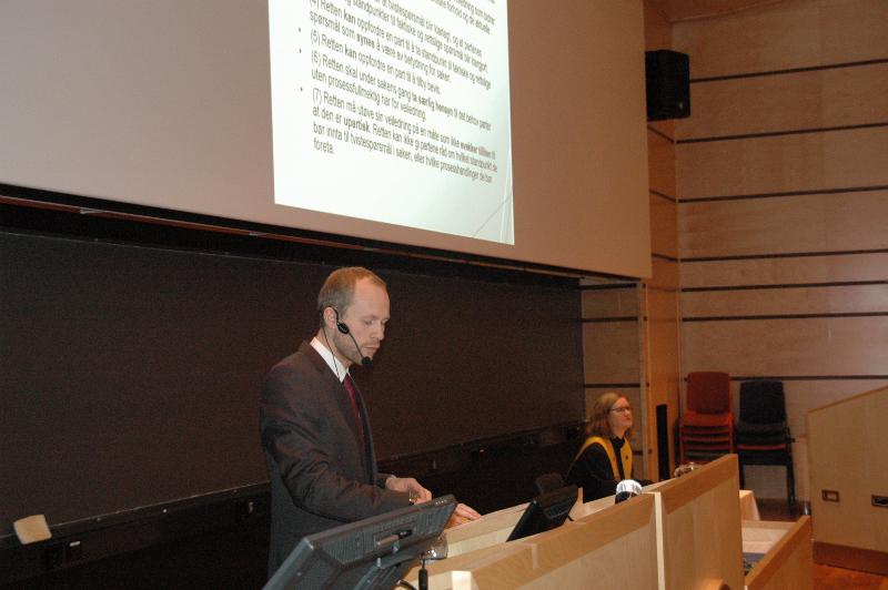 Prøveforelesningen var over oppgitt emne: «Nasjonal prosessautonomi på EU/EØS-rettens område – fordeler og ulemper.»