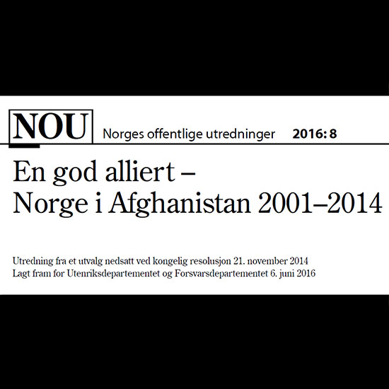 - Utenriksdepartementet NOU 2016:8: En god alliert – Norge i Afghanistan 2001–2014