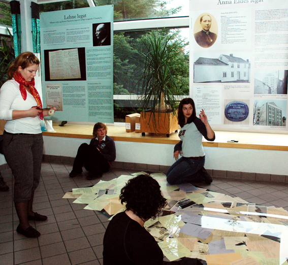 | Historiestudentene gjør ferdig utstillinga. Foto: Maja Sojtaric |