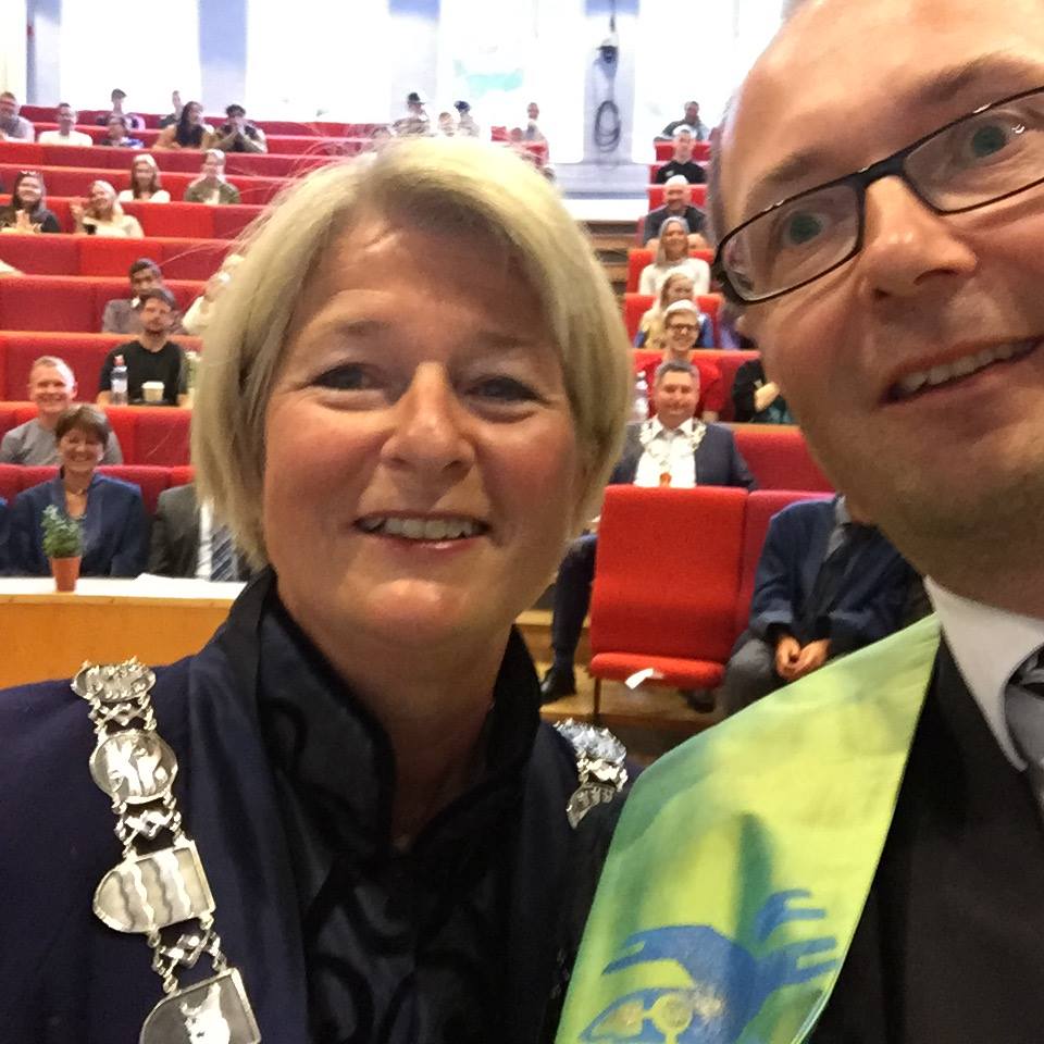 DET VAR EN GANG: I 2016 var det en historisk åpning av det akademiske året i den ferske universitetsbyen Narvik. Akademisk prosesjon, positive og offensive taler og god musikk. Ikke rart man blir litt oppspilt! Med UiTs rektor Anne Husebekk og dekan Bjørn Solvang ved IVT-fakultetet.