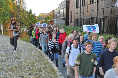 Her er en billedkavalkade fra studentdemonstrasjonen og forberedelsene til styremøtet.