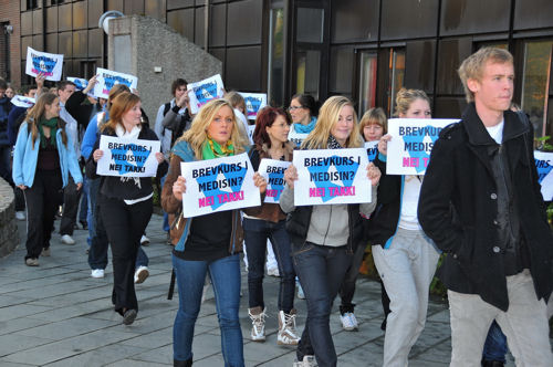 Flere hundre studenter fra Det medisinske fakultet demonstrerte i forbindelse med møtet i Universitetsstyret 18. september.