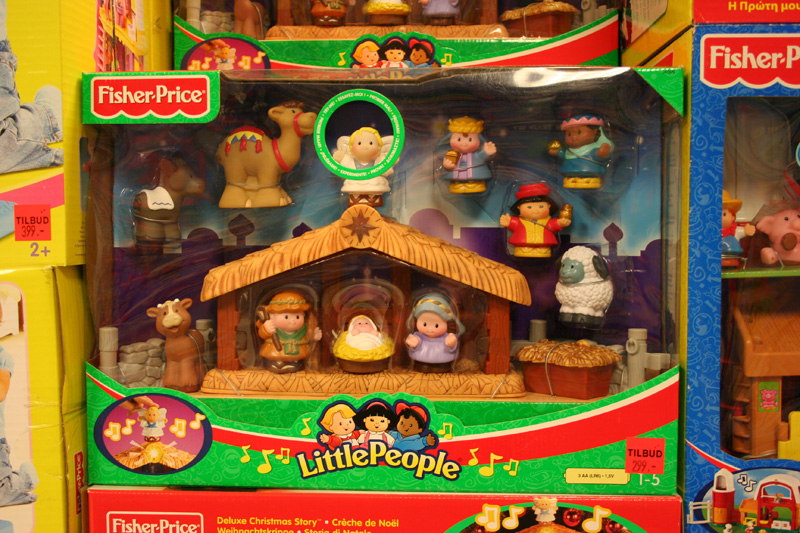 I julen er Jesusbarnet ikke bare en sak for de kristne. Her er han i en av Tromsøs lekebutikker. Foto: Thoralf Fagertun