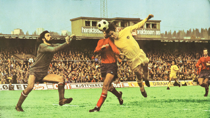 Det viktigste målet i nordnorsk fotballhistorie? Sturla Solhaug header inn 1-0 til Bodø/Glimt i cupfinalen mot Vard i 1975. Foto: Ukjent |