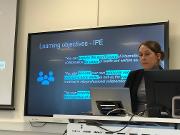 Karolinska Institutet, Linköpings universitet, Dalhousie University og Universitetet i Bergen/HVL (TVEPS) er kommet langt med sine program for tverrprofesjonell samarbeidslæring. Vi fikk innsikt i spennende og imponerende læringsaktiviteter og vurderingsformer. Det var også inspirerende å høre om HEL-0700 fra UiT Norges arktiske universitet (helsefak), et felles emne for førsteårsstudenter danner et godt utgangspunkt og grunnlag for kompetanseutvikling innen tverrprofesjonell samhandling. Eksempler på TPS fra helsehuset, farmasi og medisin ble delt med innlevelse og høyt engasjement. Den første økta ble avsluttet med gode diskusjoner og refleksjoner om likhetstrekk mellom TPS i de ulike institusjonene og potensialet for videre utvikling. Flere ansatte fra studieprogram og helsetjenestene uttrykte at de ble veldig motivert og inspirert til å ta fatt på videre utvikling av tverrprofesjonell samarbeidslæring i eget fagmiljø.  Flere av deltakerne tok også opp et ønske om å få på plass større inkludering av studenter og pasienter i planlegging av TPS.
