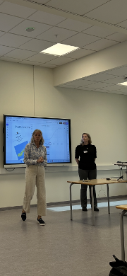 Catrine Buck Jensen og Anita Iversen innledet til diskusjon om hva vi forstår med Bærekraftig utdanning i helse- og sosialfag ved å vise en video av hvordan et universitet har arbeidet med å innføre bærekraftig utdanning.