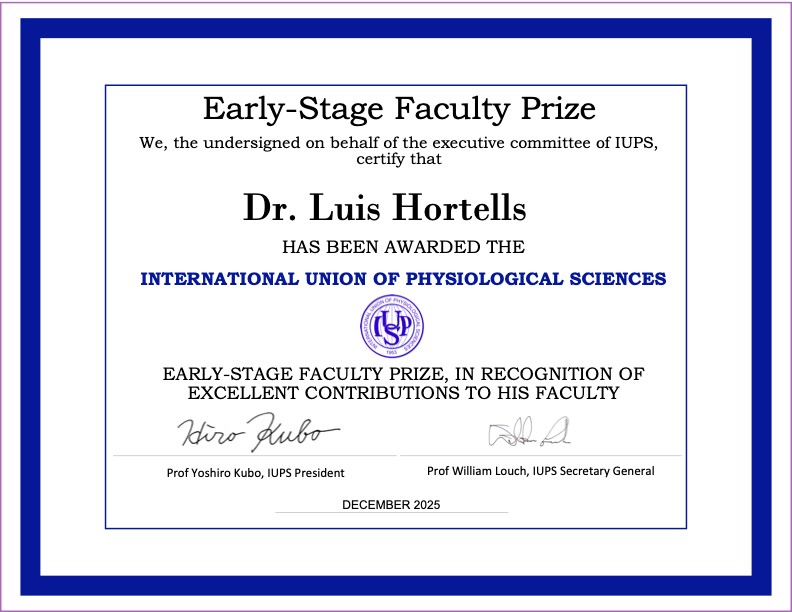 ![]() Associate Professor Luis Hortells was recently awarded with the Early-Stage faculty price in recognition of excellent contributions to his faculty from the International Union of Physiological Sciences |
