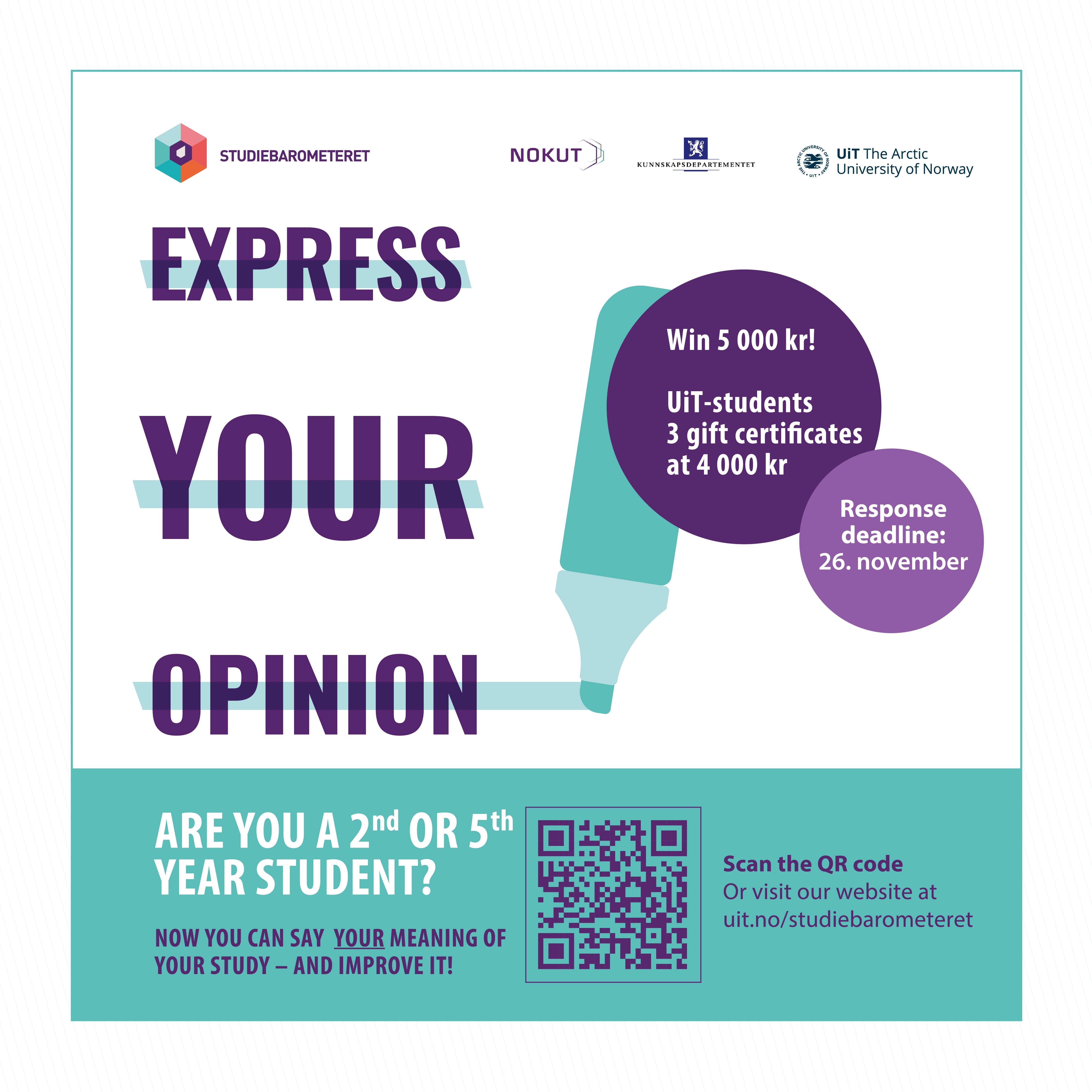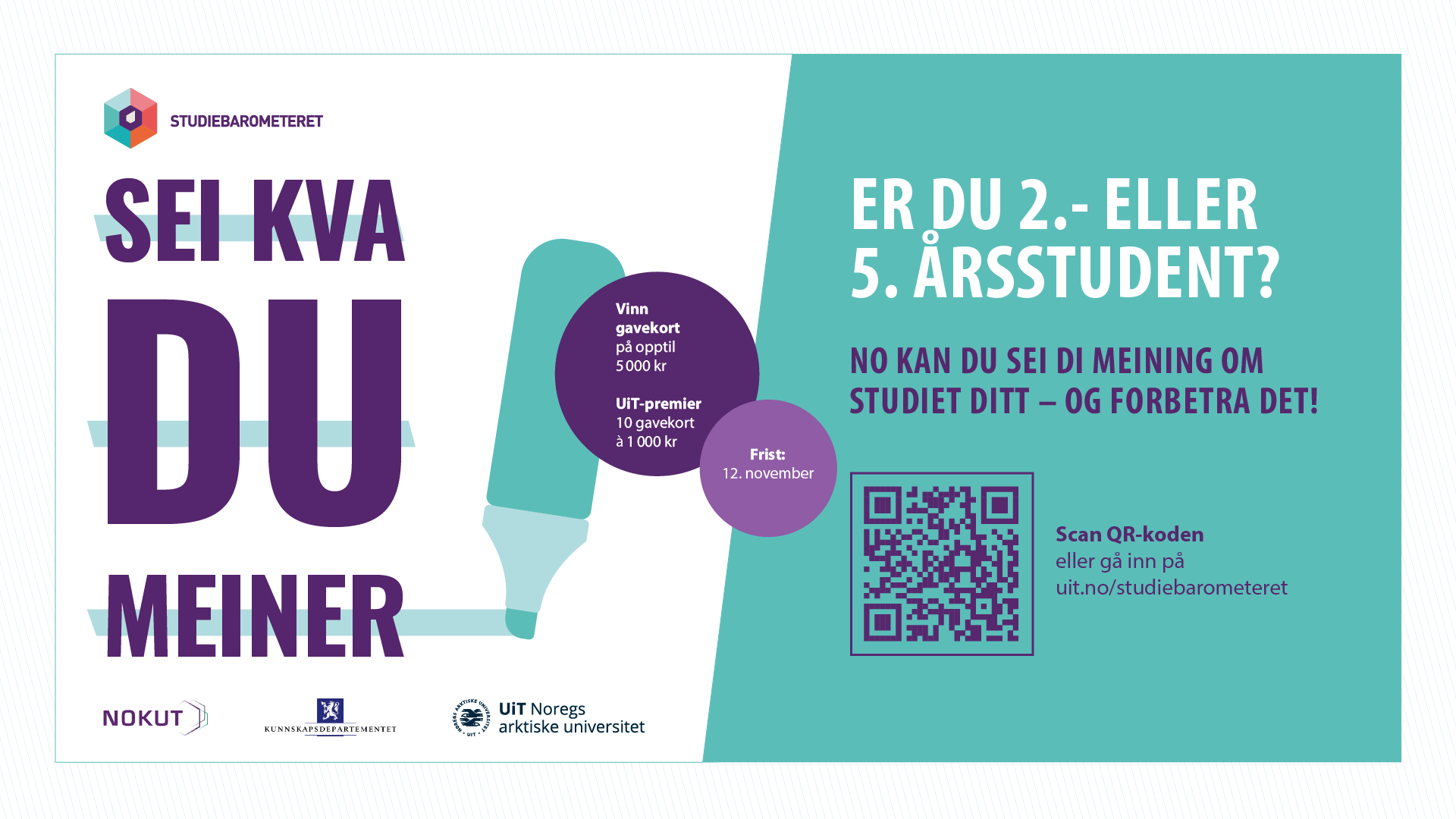 Tilbakemeldinger fra studenter er viktig og nyttig. Svarene i undersøkelsen brukes til å gjøre studieprogrammene bedre, og er et av UiTs viktigste verktøy for å forstå hvordan studenter opplever å være student ved universitetet. For at undersøkelsen skal kunne brukes til å forbedre det enkelte studieprogram er det viktig at nok studenter deltar. Om for få studenter svarer på undersøkelsen på det enkelte studieprogram, kan ikke resultatene brukes.