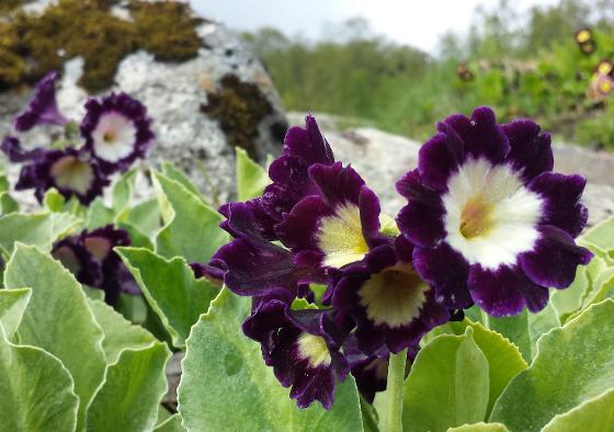 1. Hageaurikkelsamlinga! Den på biletet under er kun kjent frå ein hage i Mellomveien i Tromsø, som ein rest frå den gamle aurikkeldyrkinga som har vore på veg ut frå hagane. Men denne er bevart, er såkalla ‘Plantearven-plante’, støtta av Norsk Genressurs-senter, for og bevarest og formerest kun ved deling. Den står lengst til høgre i det øvste aurikkel-beddet.