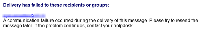 Hvis du får denne feilmeldingen, må du enten vente til problemet er løst (Denne driftsmeldingen vil bli oppdatert) eller kontakte mottaker på annen måte (Telefon, skype, annen e-postadresse etc.)