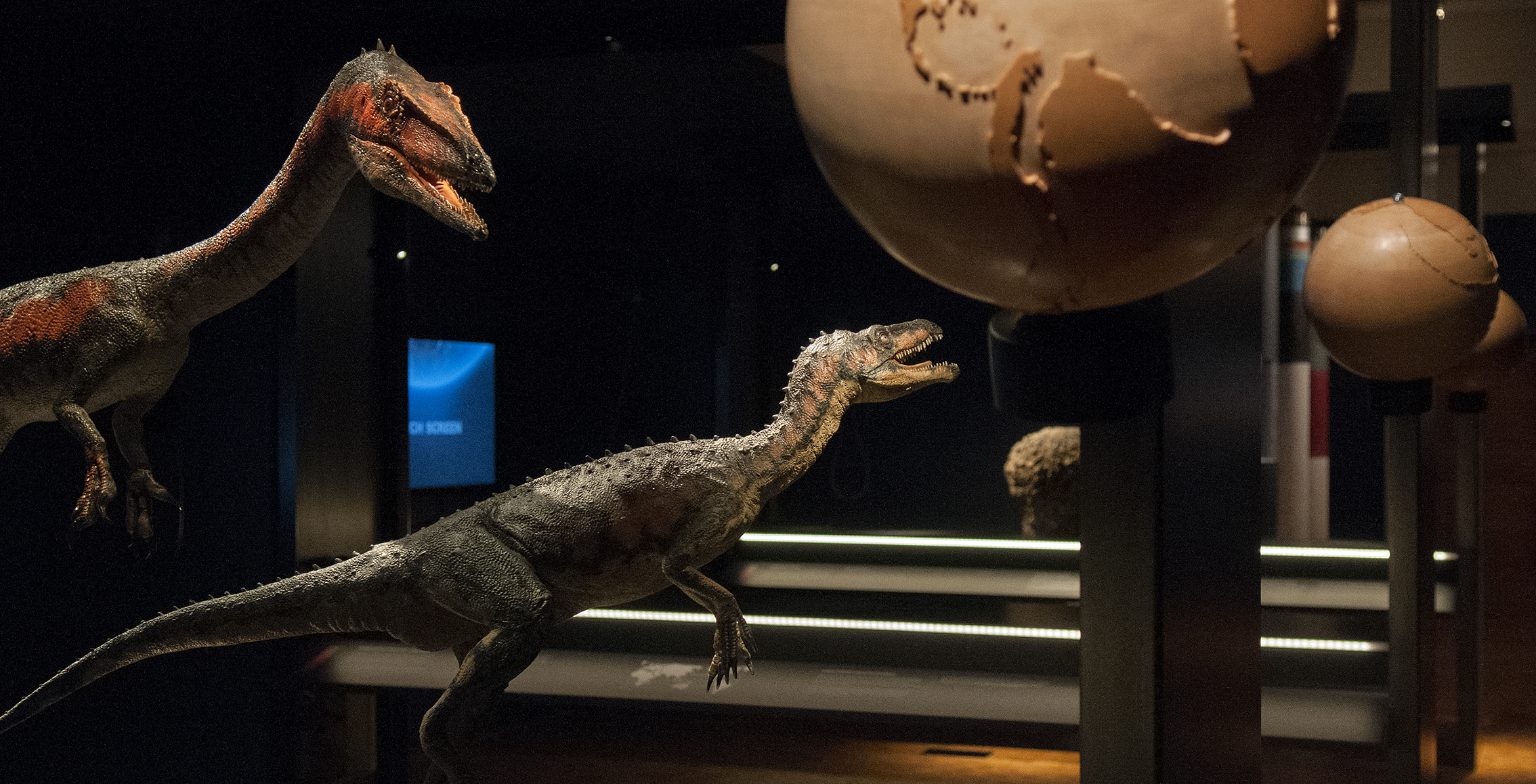 Fra samlingene har vi hentet unike funn. Mye kan man ta på, mens annet ikke tåler berøring. Vi viser fossiler bl.a. av tidlig liv på jorda, og selvsagt også olje, kull og dinosaurer. Du kan gjøre et dypdykk i geologiske fenomen på storskjerm eller engasjere deg på interaktive skjermer i utstillinga.
