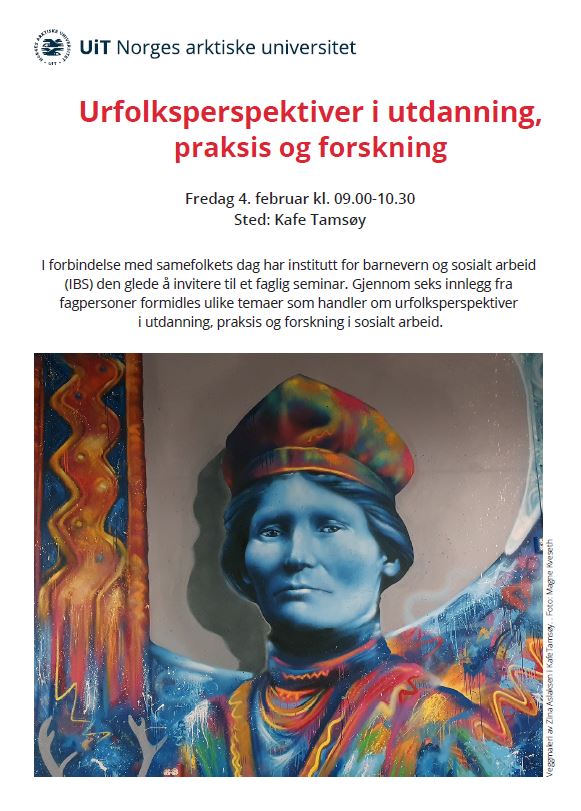 I forbindelse med samefolkets dag har institutt for barnevern og sosialt arbeid (IBS) den glede å invitere til et faglig seminar. Gjennom seks innlegg fra fagpersoner formidles ulike temaer som handler om urfolksperspektiver i utdanning, praksis og forskning i sosialt arbeid.