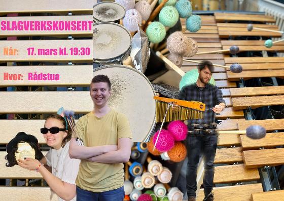 Slagverkerne ved Musikkonservatoriet tar med seg noen medstudenter og inviterer til konsert på Rådstua fredag 17. mars kl. 19.30.