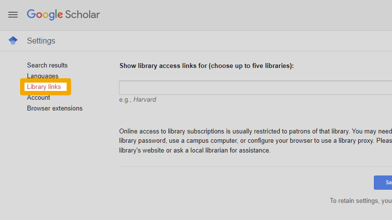 We recommend making the following configurations before starting a search in Google Scholar. This will provide you with an overview of the resources you have access to.